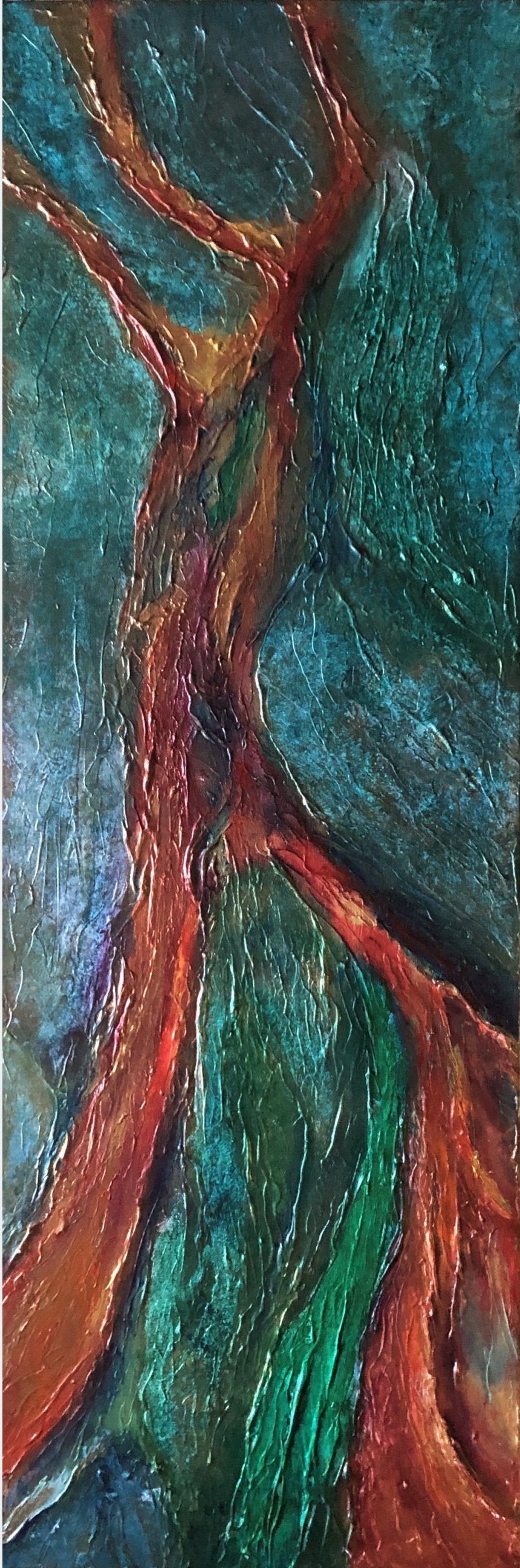Apparizione di Fuoco (Apparition of Fire) Acrylic and heavy gesso on canvas 12 W x 36 H x 1.5 D $875