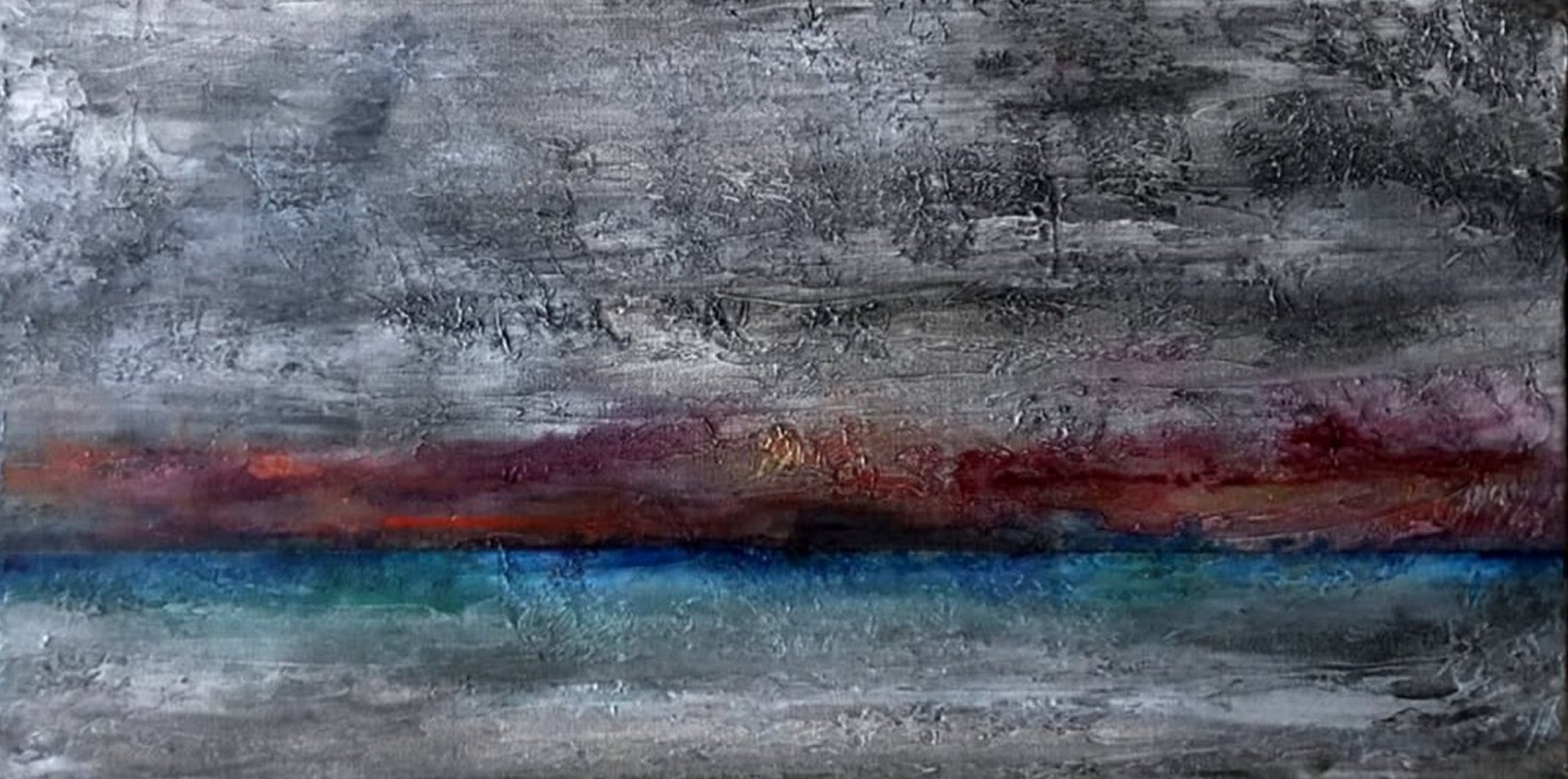 Tramonto Scuro (Dark Sunset) Acrylic and heavy gess on canvas 24 W x 12 H x 1.5 D $325